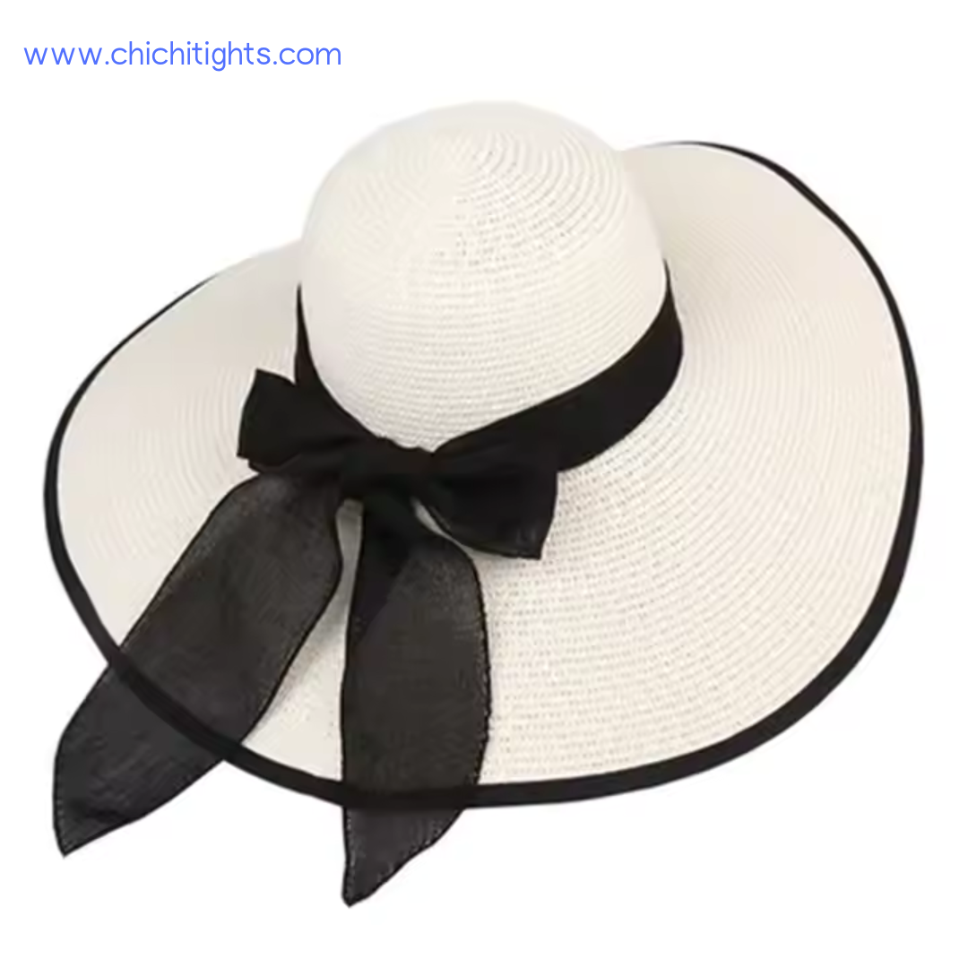 ✨ Features: Wide brim for max sun protection, oversized bow detail